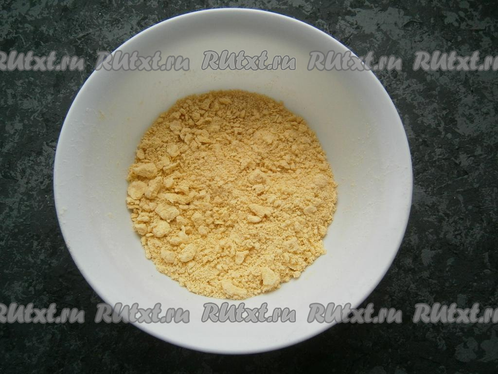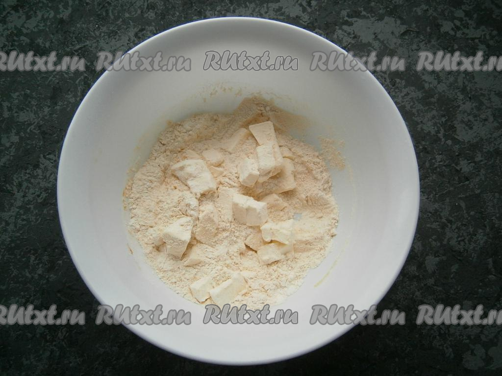 Хорошо перемешать получившуюся смесь, затем добавить кусочки холодного масла (или маргарина).