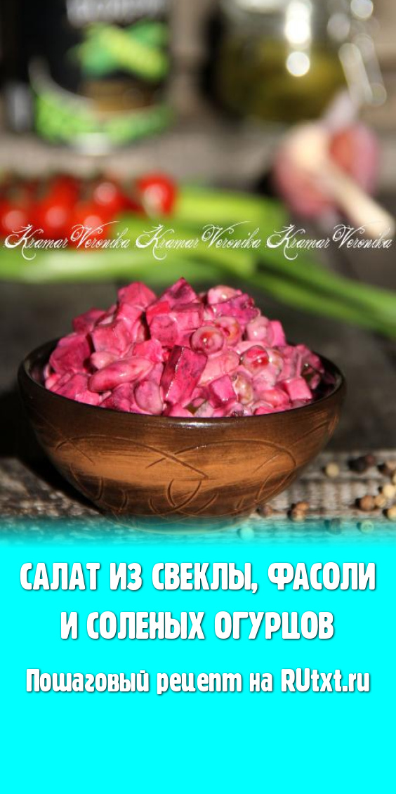 Салат из свеклы, фасоли и соленых огурцов получается ярким, вкусным, сытным. Приготовление такого салатика не займёт много времени (если сварить свеклу заранее), а в результате получится замечательное блюдо, которое можно подать к столу и в будни, и в праздники.