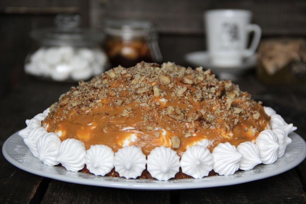Недавно купила безе (мини меренги) и решила приготовить вкусный бисквитный торт с безе, вареной сгущёнкой и орехами. Тортик получился таким вкусным, что мои домашние попросили повторить! Бисквит для основы можно приготовить по любому рецепту, я решила сделать шоколадный. Такой торт можно смело приготовить на праздничный стол или к повседневному чаепитию. Тортик получается воздушным, лёгким и очень вкусным. Безе для этого торта можно купить в магазине или сделать самостоятельно, орехи подойдут любые, можно даже взять ассорти.