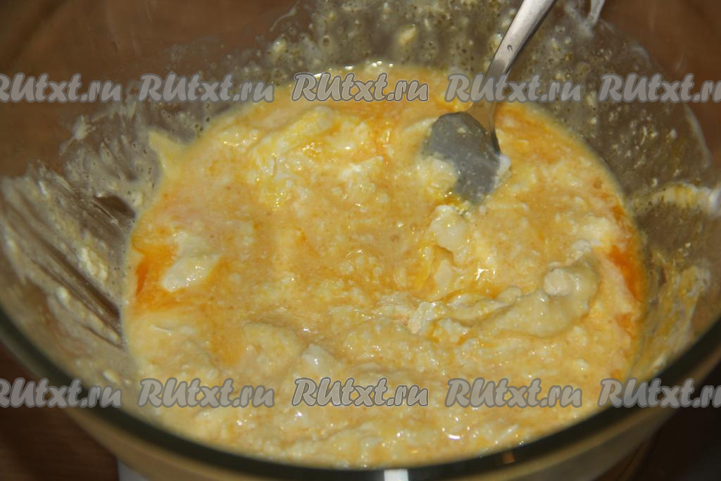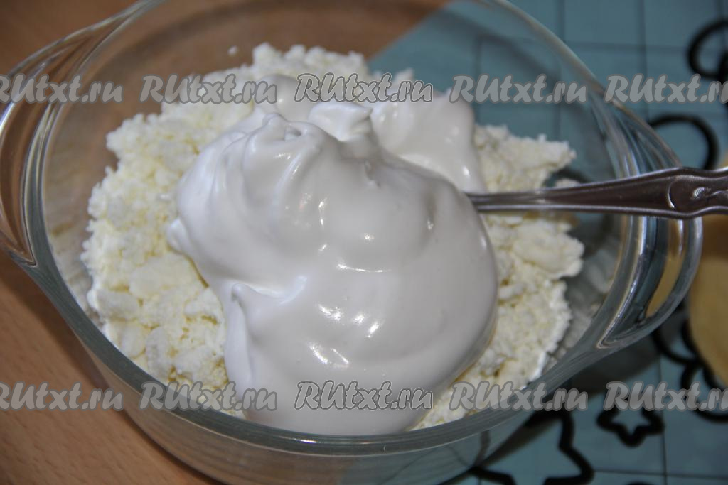 Перетереть массу вилкой до однородного состояния. Затем добавить цедру и сок лимона, ещё раз перемешать.