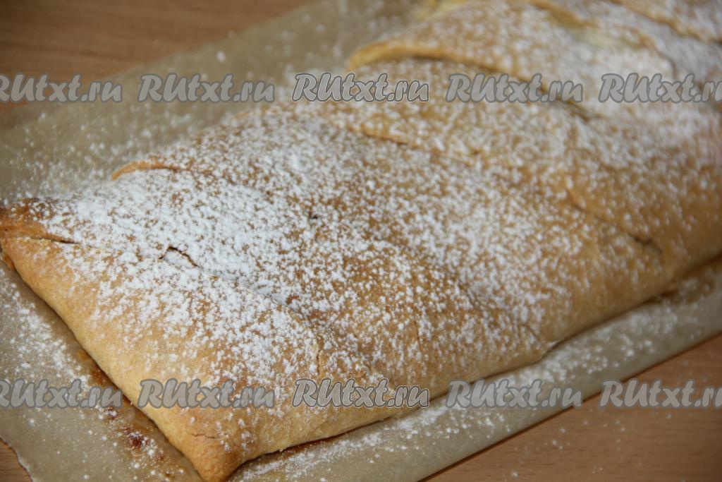 Тесто разделить на две равные части. Каждую часть теста раскатать в прямоугольный пласт. У нас получится два пласта.