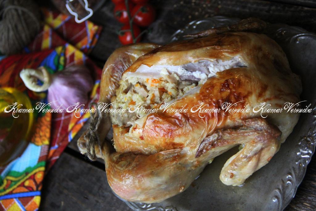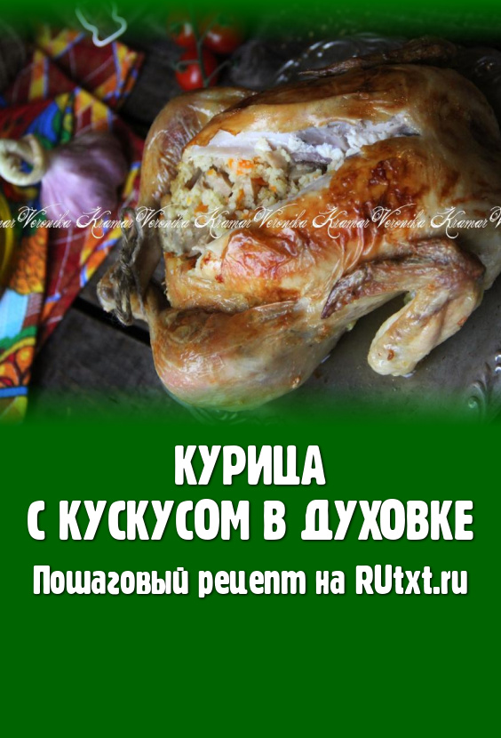 Кускус - замечательная крупа, которая отлично сочетается с куриным мясом. Предлагаю приготовить курицу, фаршированную кускусом, в духовке. Блюдо получается и сытным, и вкусным. В принципе, мы готовим одновременно гарнир из кускуса и аппетитную курочку. Курица получается не сухой, с зажаристой корочкой, а кускус пропитывается куриным жиром и соком. Очень вкусно! Уверена, блюдо, приготовленное по этому рецепту, понравится многим!