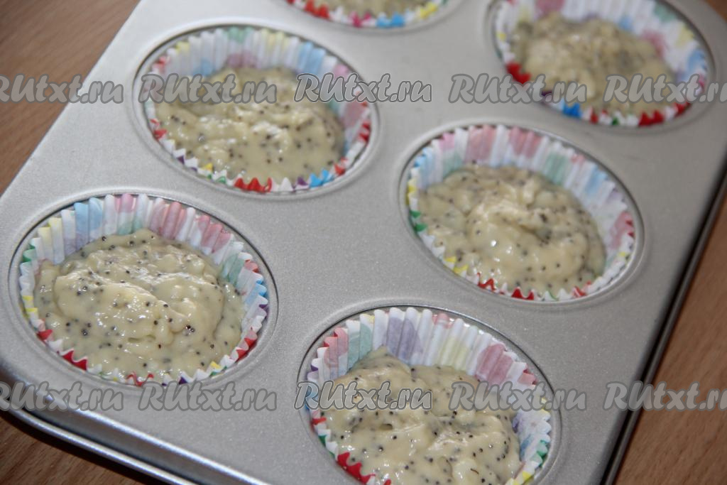 Разложить тесто по формочкам, заполняя их чуть больше, чем на половину. Я выпекала кексы в бумажных вкладышах. Выпекать маффины с маком в разогретой духовке минут 25-30 при температуре 200 градусов.