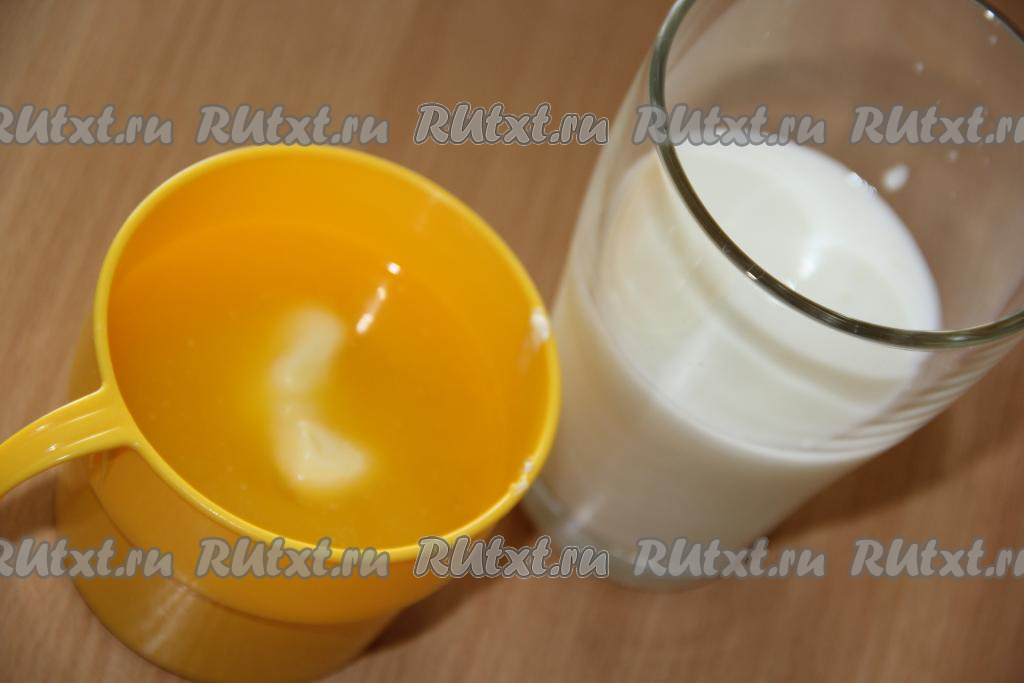 В яичную массу добавить кефир и растопленное масло, взбить миксером в течение минуты.