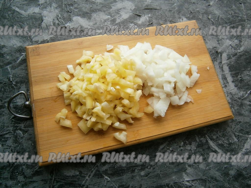 Лук, морковь и чеснок очистить. Удалить из болгарского перца семена и плодоножку. Вымыть баклажаны, нарезать маленькими кубиками, посолить, оставить на 20-30 минут, затем хорошо отжать.