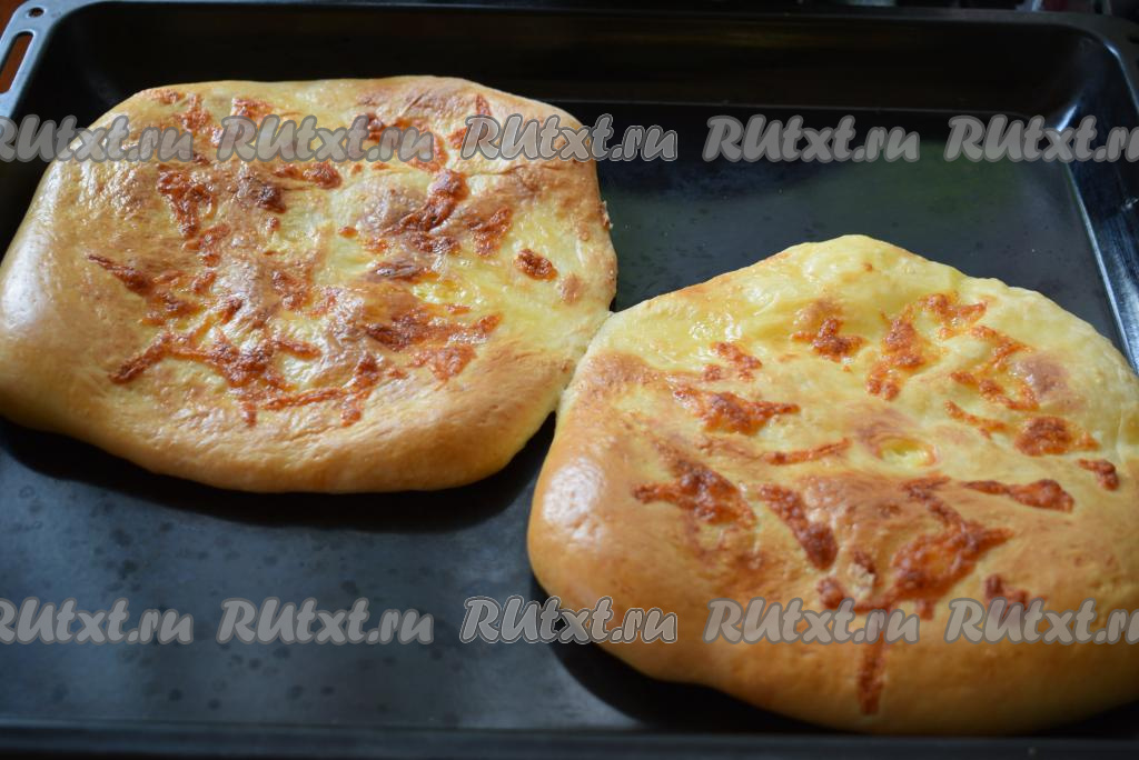 Хачапури с сыром отправляем в разогретую духовку и выпекаем минут 30-35 при температуре 180 градусов.