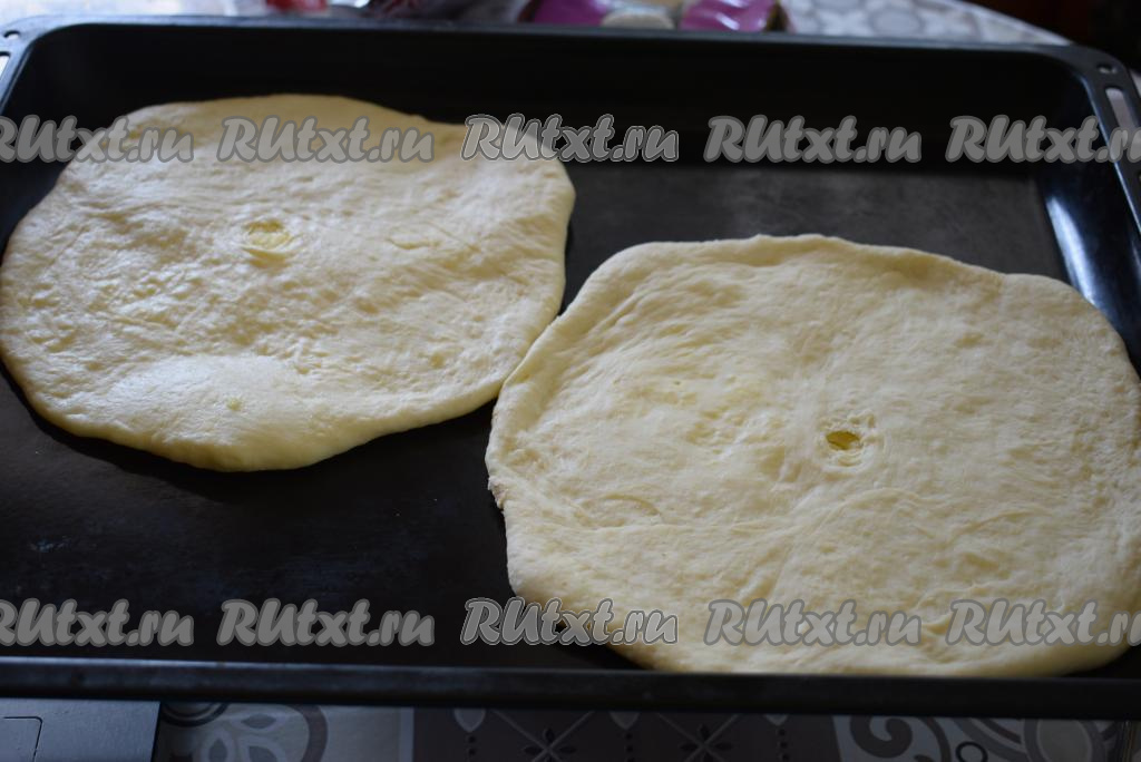 Раскатываем каждый кусочек теста в лепёшку диаметром, примерно, 20-22 см.