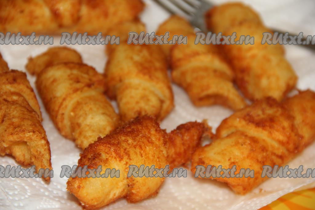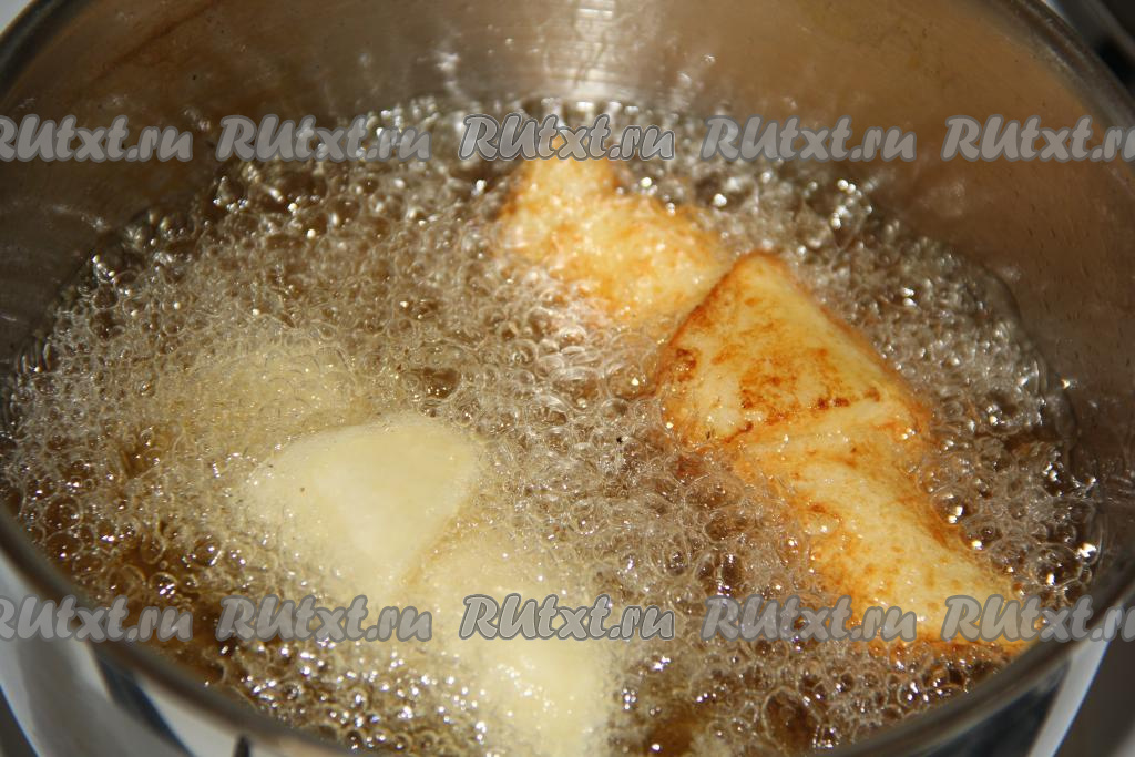 Растительное масло хорошо разогреть и опустить в него рогалики из картофельного теста.
