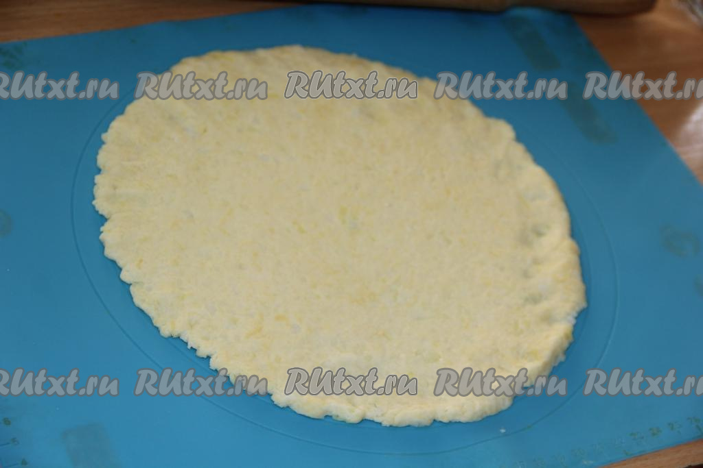 Я же решила сделать вместо обычных пирожков рогалики. Раскатать тесто в круг толщиной 0,5 см.