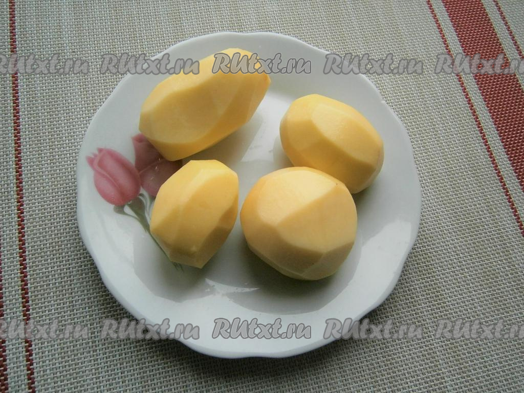 Нарезать картофель брусочками, залить полностью холодной водой и оставить на 7-10 минут.