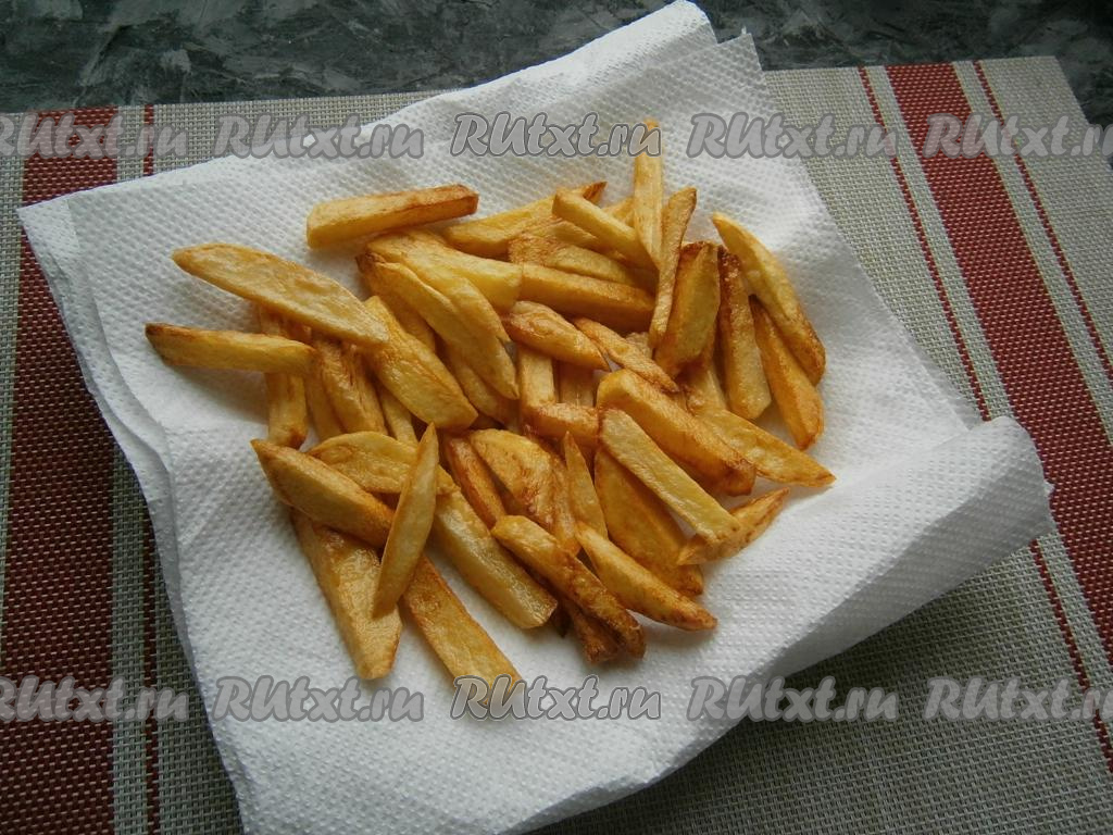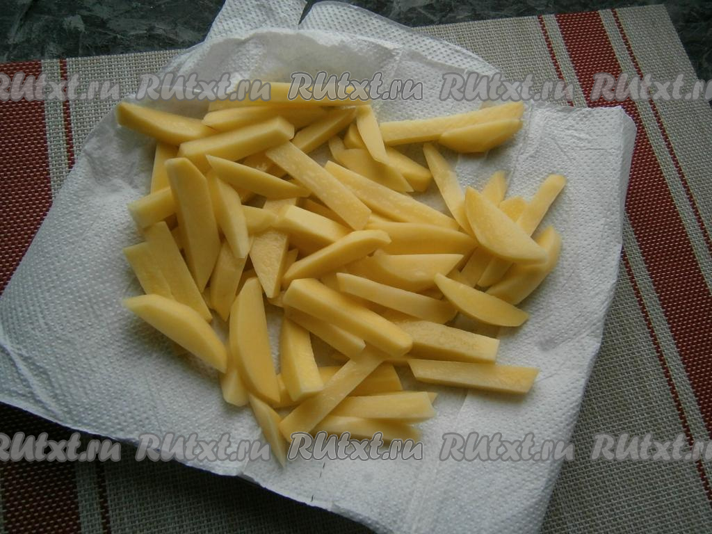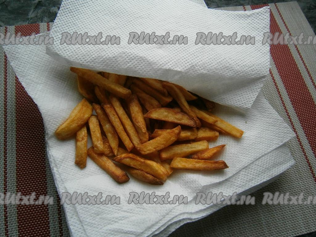 Выложить картофель фри на бумажное полотенце и дать обсохнуть в течение 2-3 минут.