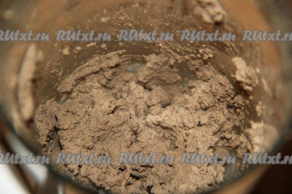 Отваренную куриную печень выложить в чашу блендера и измельчить в паштет (до однородности).