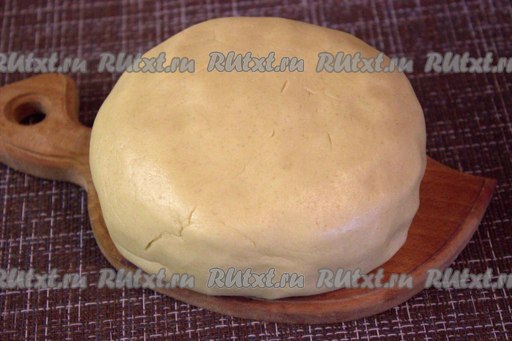 Песочное тесто получится мягким, нежным, не липнущим к рукам, сформировать его в шар, завернуть в пищевую плёнку и на 1 час поместить в холодильник.
