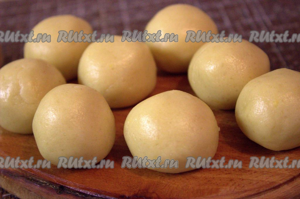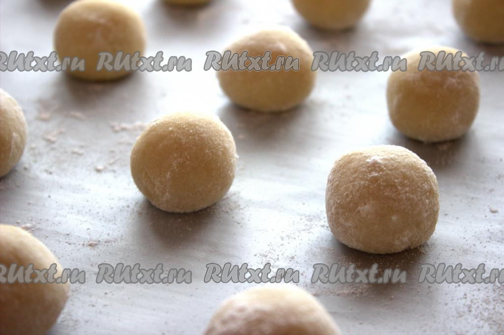 По прошествии времени тесто разделить на шарики размером с грецкий орех (весом, примерно, 20-21 грамм).