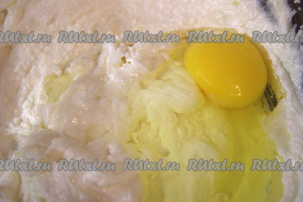 В смесь из масла и сахара вбить яйцо, взбить миксером.