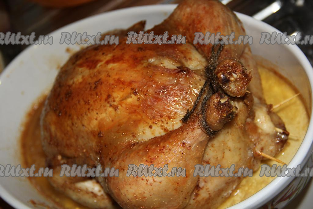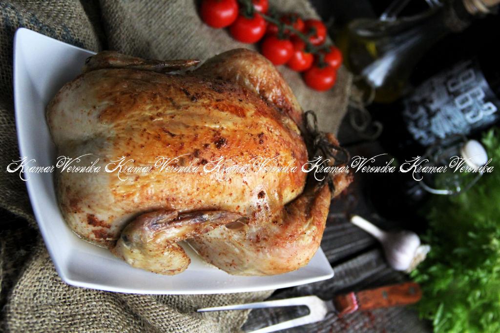 Курица, запечённая целиком в духовке по этому рецепту, получается сочной и очень аппетитной. А хлеб, которым мы нафаршировали птицу, пропитывается мясными соками, смешивается с сыром и становится необыкновенно вкусным. Подать такой хлебушек можно вместе с кусочками курочки к столу. В результате мы получаем полноценное наивкуснейшее блюдо для семейного ужина, обязательно попробуйте!
