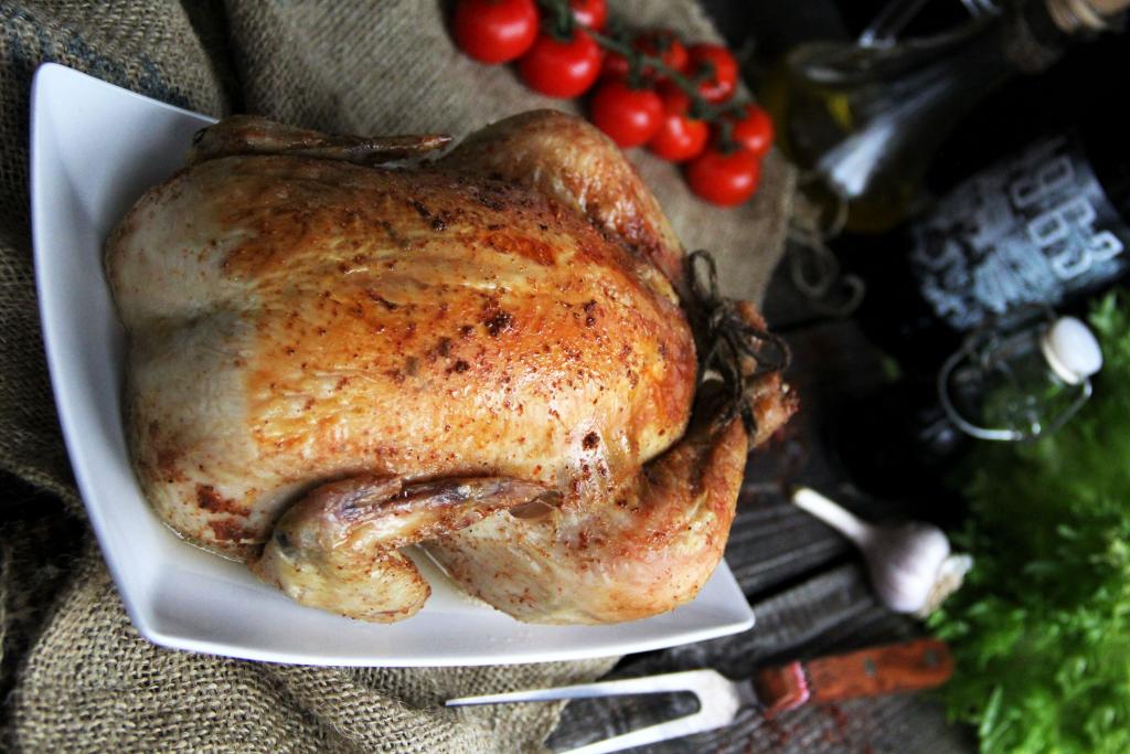 Заколоть зубочистками (или зашить нитками) кожу в области шеи и гузки (начинка должна быть полностью закрыта).