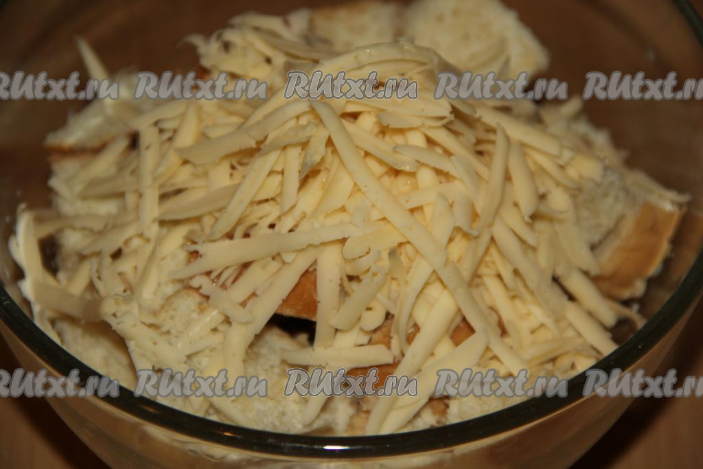Твёрдый сыр натереть на крупной тёрке, добавить к хлебу и перемешать начинку.