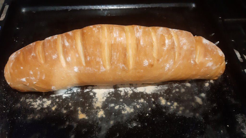 В процессе выпечки батон отлично поднимется, станет румяным, красивым и будет аппетитно пахнуть свежим хлебом.