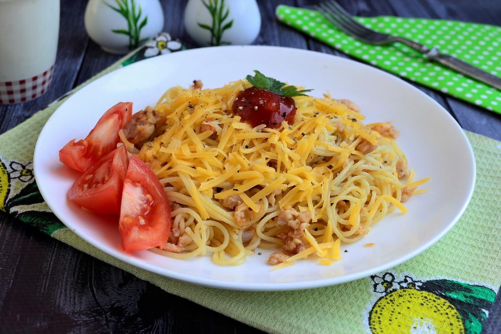 Спагетти, приготовленные с фаршем и сыром на сковороде, - вкуснейшее блюдо в итальянском стиле для вашего повседневного стола. Такими вкусными и сытными спагетти можно быстро накормить всю семью, ведь готовятся они совершенно просто и быстро. Фарш можете использовать тот, который вам нравится, я использовала свиной фарш. Очень важно для лучшего вкуса блюда взять хороший, не пресный, но и не слишком солёный натуральный сыр.