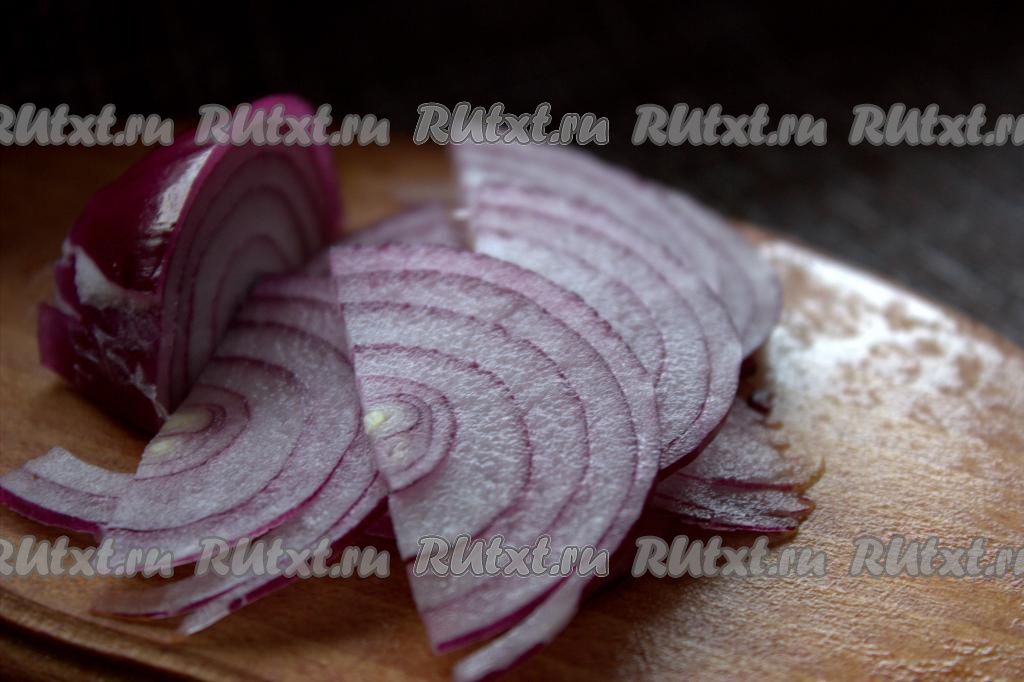 Репчатый лук очистить, а затем нарезать тонкими полукольцами.
