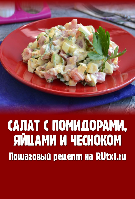Салат, приготовленный с помидорами, яйцами и чесноком, - совершенно простой, но безумно вкусный летний салатик, который понравится многим. Такой салат можно подать и к повседневному, и к праздничному столу. Готовить его нужно на один раз, рекомендую!