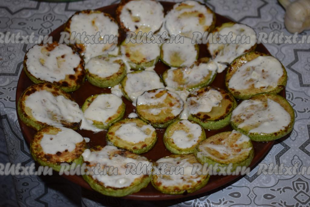 Переворачиваем кабачки на другую сторону и жарим ещё, примерно, 5 минут (до готовности). Готовые кабачки снимаем со сковороды и выкладываем на бумажные полотенца для того, чтобы ушло лишнее масло. Таким образом жарим все кабачки, даём им остыть.