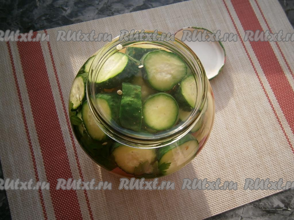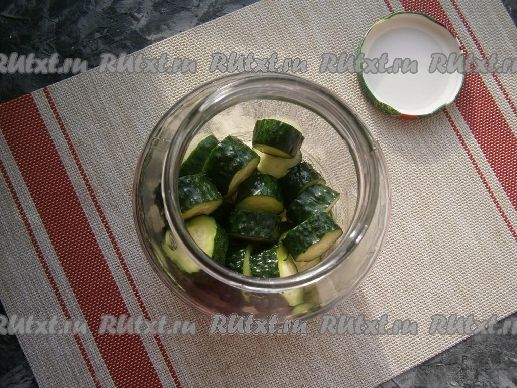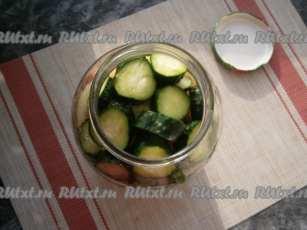 Затем огурцы, нарезанные кружочками толщиной около 1-2 см.