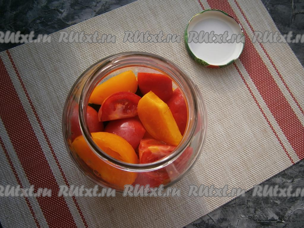 Сюда же выкладывать и помидоры, разрезанные на 2-4 части (или на дольки).