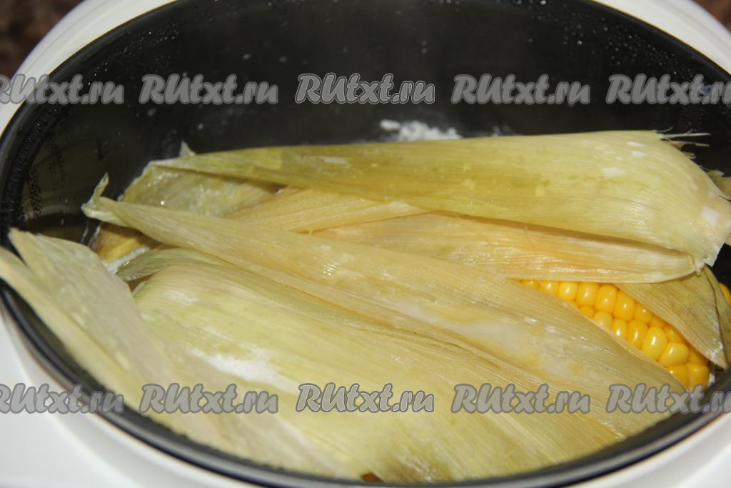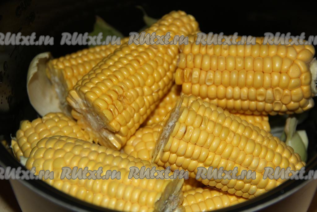 Выложить кусочки початков кукурузы в чашу мультиварки.