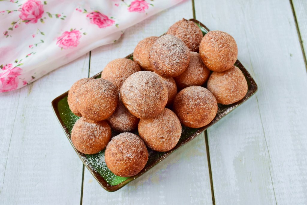 Шарики готовы, их можно при подаче посыпать сахарной пудрой.