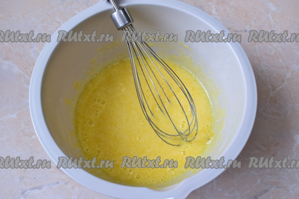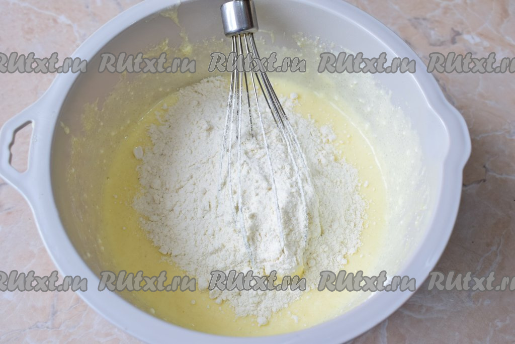 Соду погасите уксусом (она начнёт пениться), добавьте её в миску к творожно-яичной массе, перемешайте.