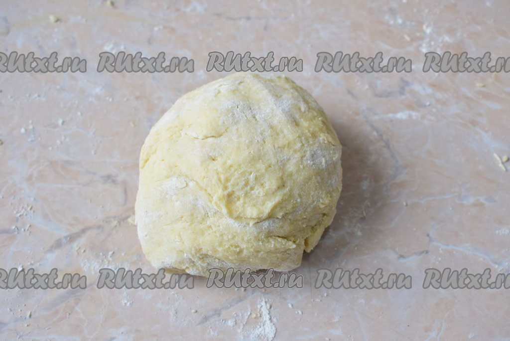 Замесите мягкое творожное тесто. Долго месить не надо, иначе тесто забьётся мукой и готовые изделия будут жёсткими. Контролируйте густоту теста. Оно должно собраться в комок и почти не будет липнуть к рукам.