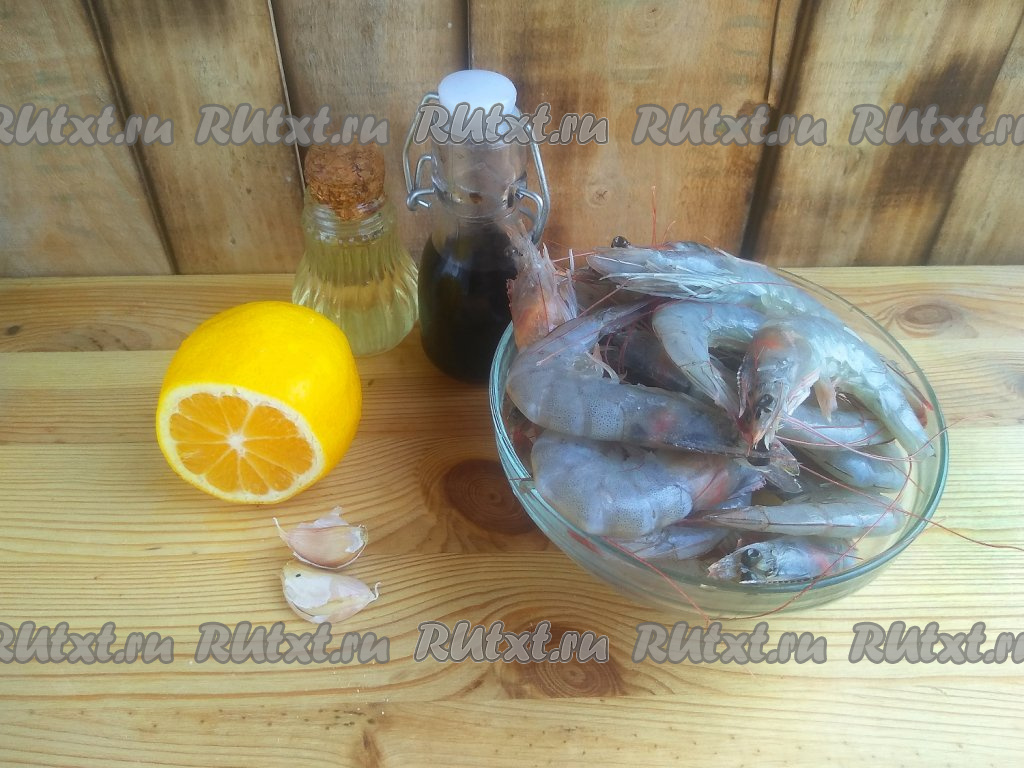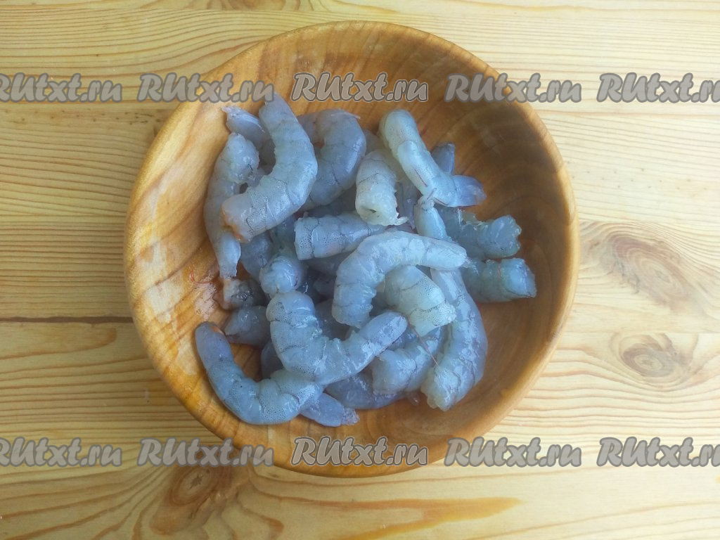 Подготовить ингредиенты. Королевские креветки разморозить при комнатной температуре.