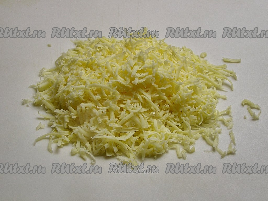 Для приготовления начинки натираем сыр на мелкой тёрке.