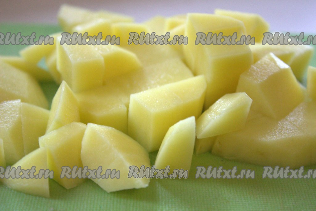 Очистить клубни картофеля и нарезать на небольшие кубики.