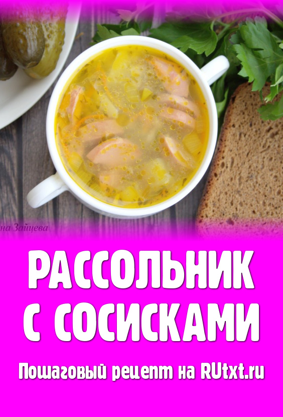 Вкусный, аппетитный рассольник с сосисками разлить по тарелкам и подавать к столу с мягким свежим хлебушком.