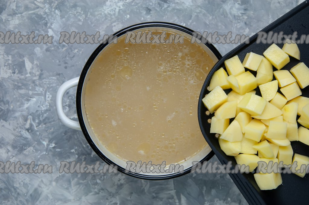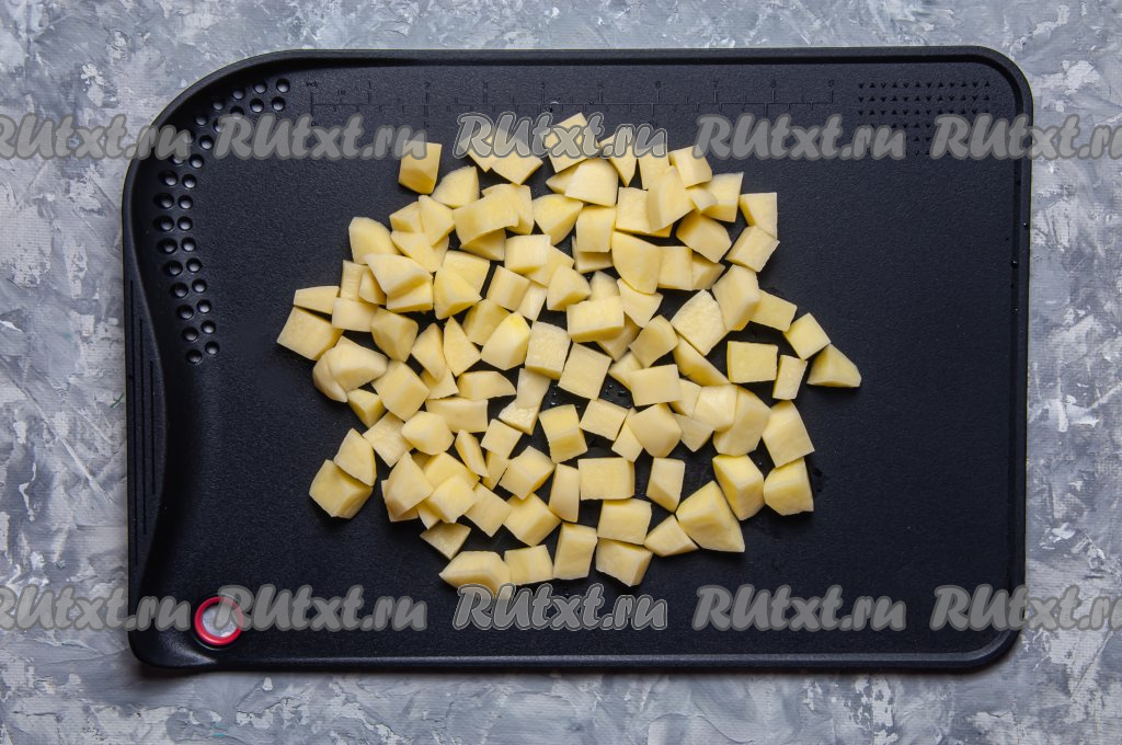 Помойте, почистите и нарежьте картофель на средние кубики.
