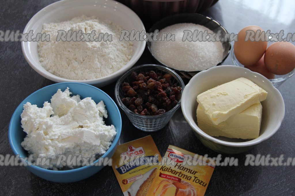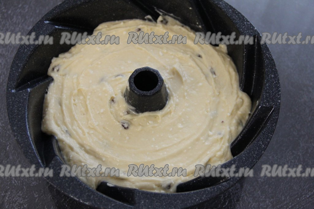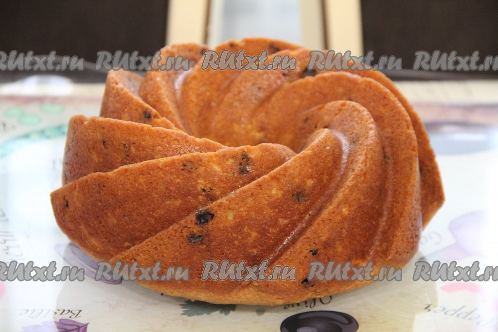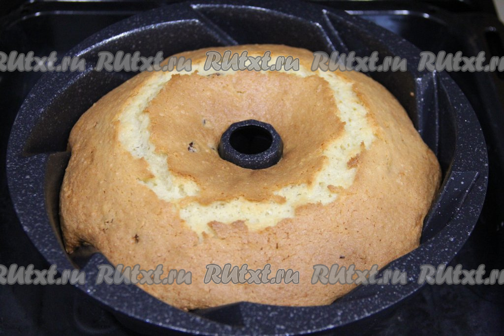 Поставить форму в хорошо разогретую духовку и выпекать творожный кекс с изюмом минут 45 при температуре 180 градусов.
