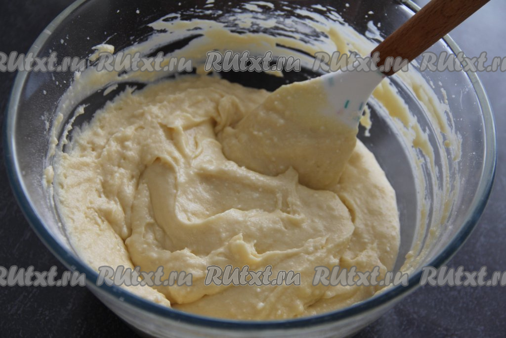 Творожное тесто для кекса должно получиться воздушным и в меру густым, как на фото.