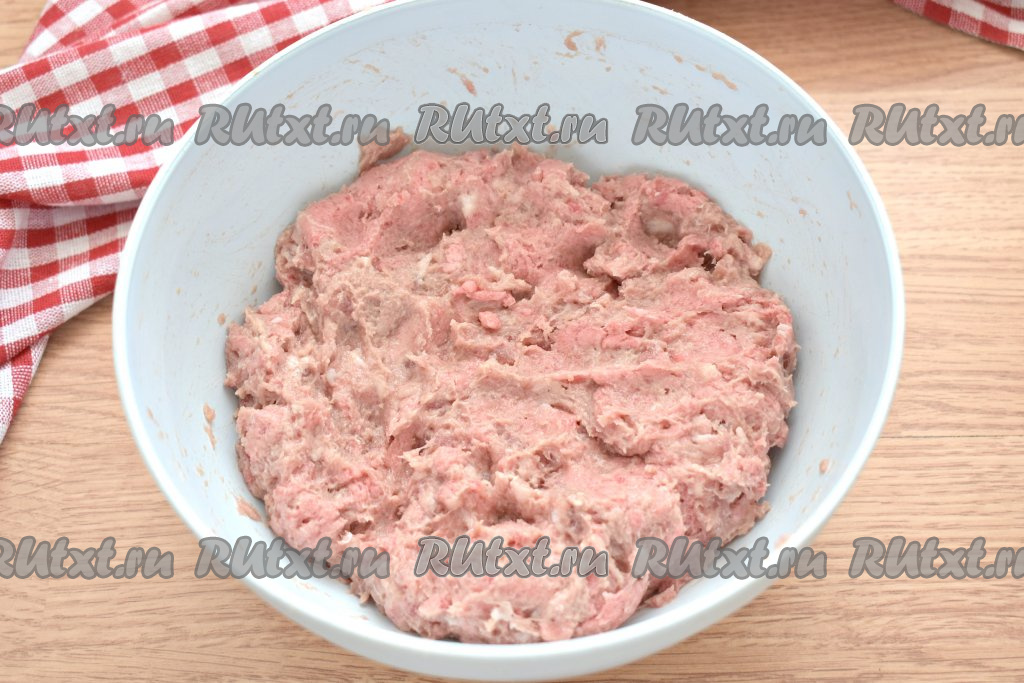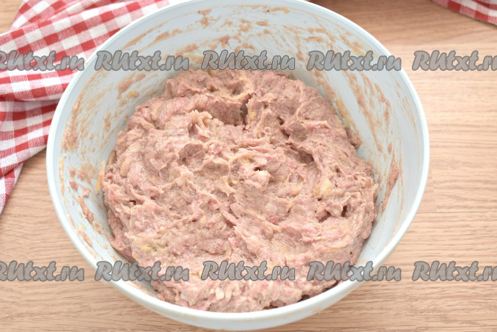 Добавляем яйцо, всыпаем специи по вкусу и солим, тщательно перемешиваем получившийся фарш.