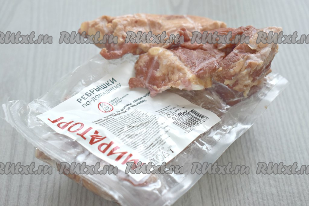 Вот такие копчёные свиные рёбрышки я взяла для приготовления горохового супа. Если рёбрышки крупные, тогда их лучше разрубить (или разрезать) на несколько частей.