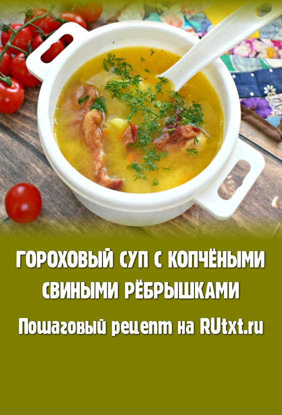 Гороховый суп - достаточно популярное блюдо. Вариантов его приготовления немало. Предлагаю сварить гороховый суп с копчёными свиными рёбрышками, который прекрасно насытит и порадует отменным вкусом. Копчёные рёбрышки делают блюдо насыщенным, ароматным и очень вкусным. Уверена, гороховый суп, сваренный по этому рецепту, понравится многим!