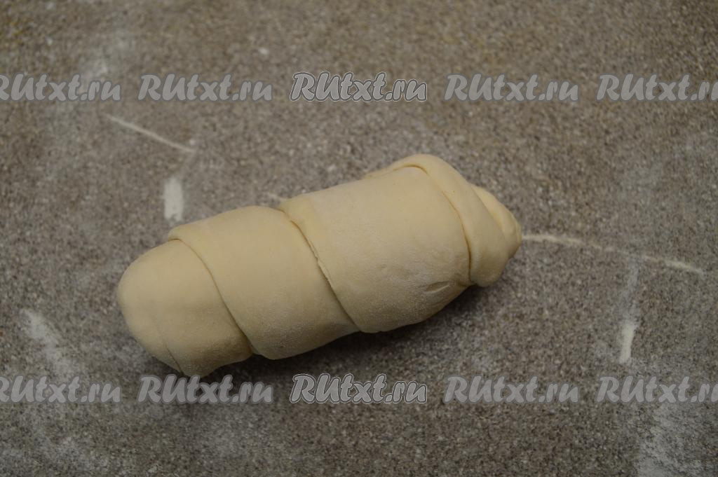 Взять первую полоску теста, раскатать её до толщины примерно 2 миллиметра.