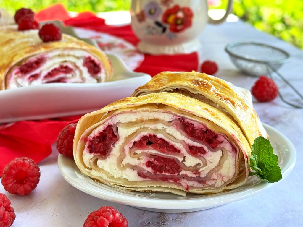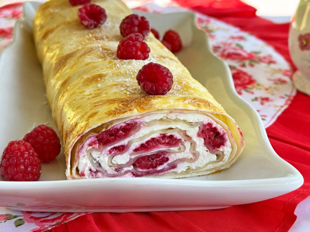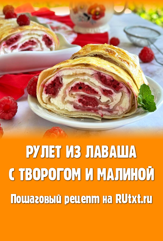 Вкусный, аппетитный рулет, приготовленный из лаваша с нежнейшей начинкой из творога и малины, можно подавать к столу и тёплым, и полностью остывшим.