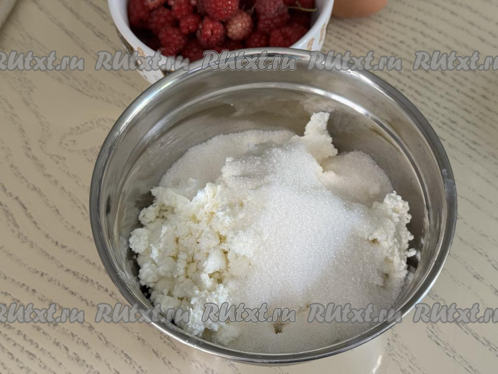 Поверх творога выложить малину.