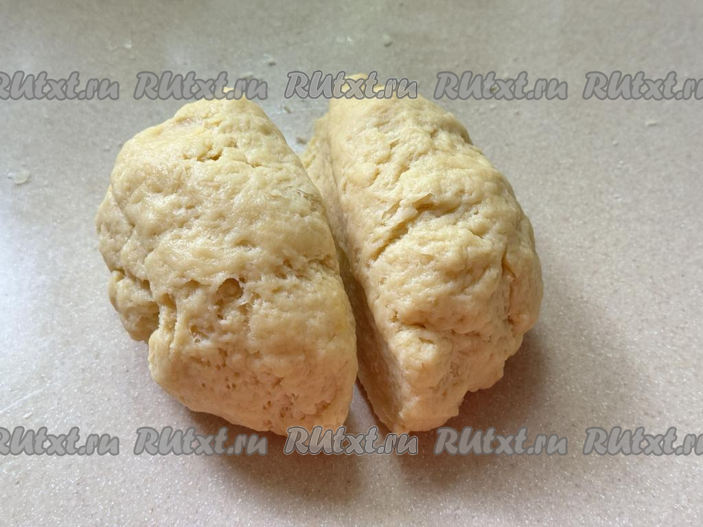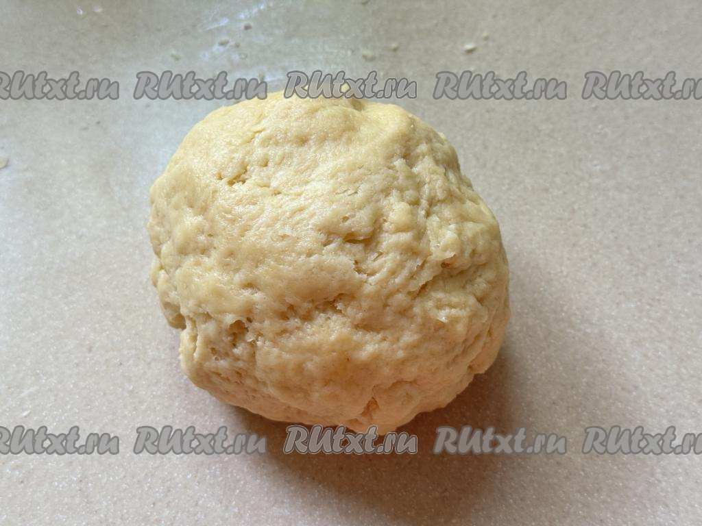 Всыпая небольшими частями муку и вмешивая её, замесить нежное, пластичное, не липнущее к рукам тесто. Как только замесили тесто нужной консистенции, значит больше вымешивать тесто и добавлять муку не нужно.
