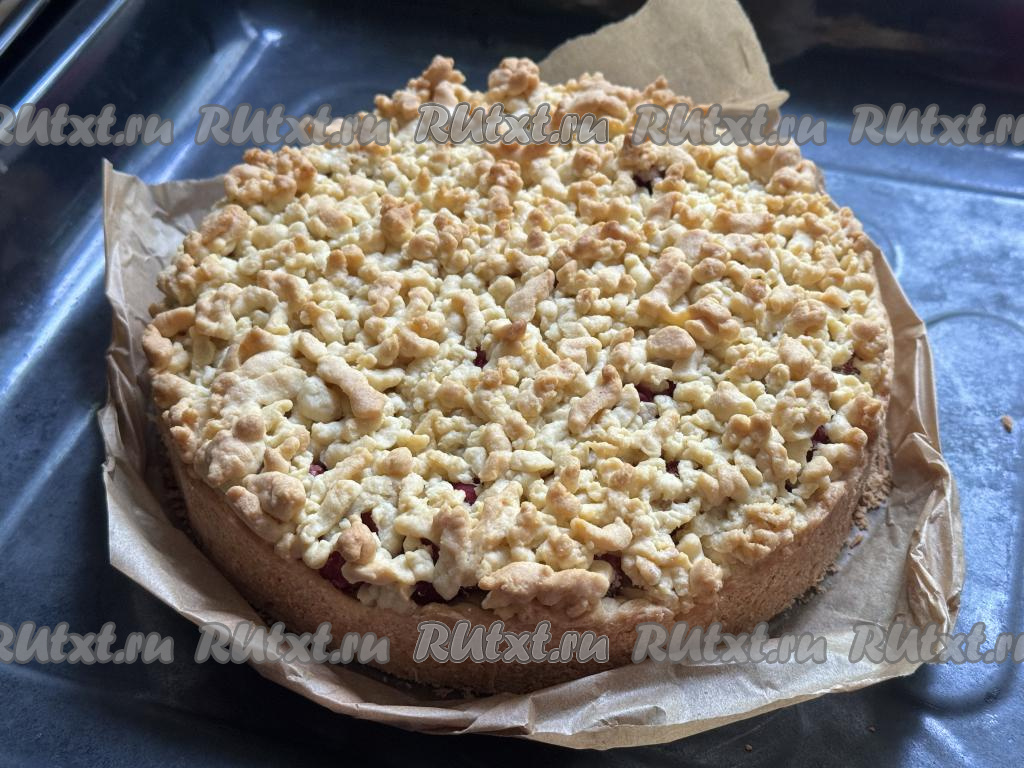 Поставить форму в разогретую до 180 градусов духовку и выпекать тёртый пирог с малиной минут 40-45 (до золотистости песочного теста).