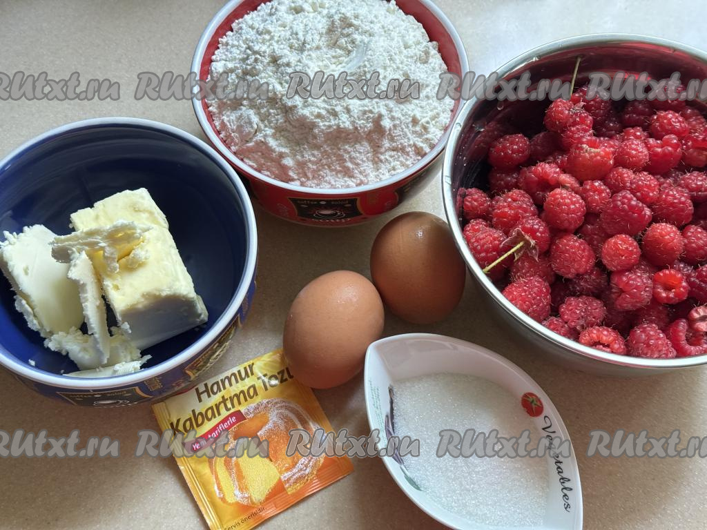Подготовить продукты. Малину можно взять как свежую, так и замороженную. Если будете готовить пирог со свежей малиной, тогда её нужно будет перебрать, удаляя плодоножку и подпорченные ягоды. Затем промыть малину водой, обсушить, разложив на бумажном (или тканевом полотенце). Если будете готовить тёртый пирог с замороженной малиной, тогда ягоды, если на них нет большого количества льда, можно не размораживать.