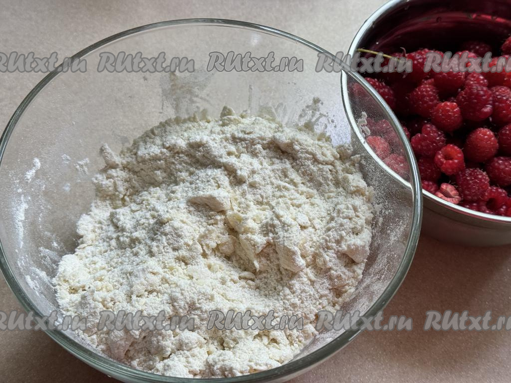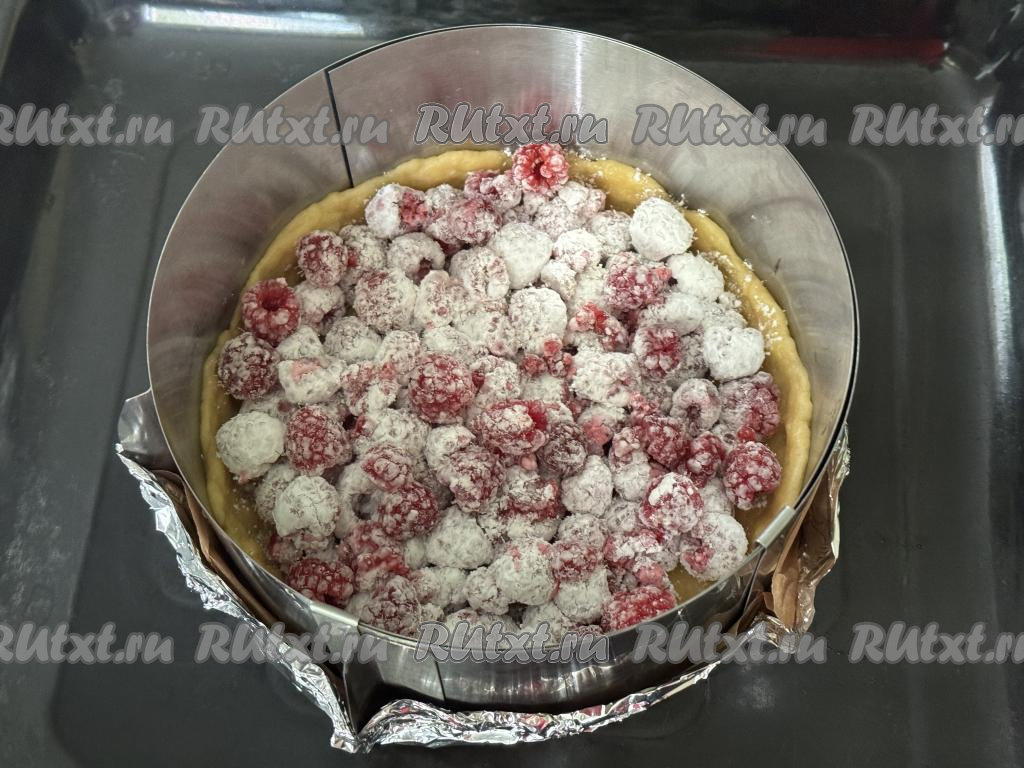 Благодаря крахмалу, сок, выделяющийся из малины в процессе выпечки, будет желироваться, а значит ягоды не будут сильно размачивать песочное тесто.